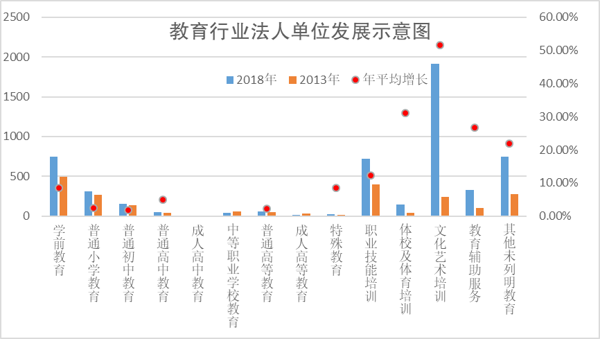 1、行业数量。全市各类教育机构5970家,其中,法人单位5244家,产活单位726家。按机构类型分,企业性质的单位3481家,事业性质的单位1154家,民办非企业性质的单位1314家。按登记注册类型分,注册为内资企业5943家,注册为港澳台商投资企业16家,注册为外商投资企业1家。主要内资企业方面,注册类别分为国有企业962家、集体企业156家、有限责任公司企业409家、股份有限公司56家、私营企业3152家、其它企业1179家。