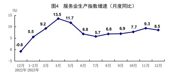 全年服务业增加值比上年增长5.8%。其中,住宿和餐饮业,信息传输、软件和信息技术服务业,租赁和商务服务业,交通运输、仓储和邮政业,金融业,批发和零售业增加值分别增长14.5%、11.9%、9.3%、8.0%、6.8%、6.2%。12月份,服务业生产指数同比增长8.5%;其中,住宿和餐饮业,信息传输、软件和信息技术服务业生产指数分别增长34.8%、13.8%。1—11月份,规模以上服务业企业营业收入同比增长8.5%。其中,文化、体育和娱乐业,信息传输、软件和信息技术服务业,租赁和商务服务业营业收入分别增长18.9%、12.8%、12.7%。