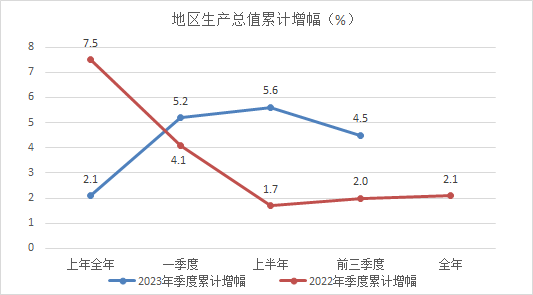 | 地区生产总值(季报) | 亿元 | 12703.75 | 4.5 |
