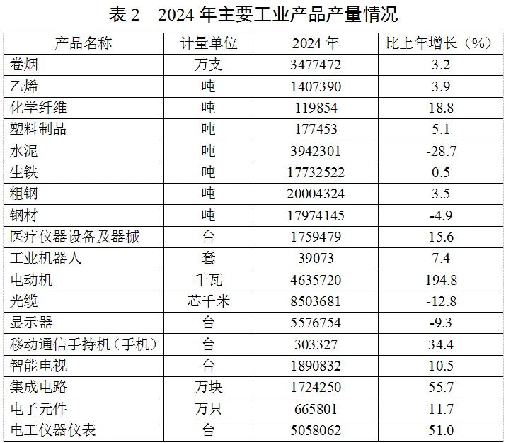 分行业看,化学原料和化学制品制造业增加值增长3.7%,医药制造业增长5.5%,黑色金属冶炼和压延加工业增长7.3%,计算机、通信和其他电子设备制造业增长4.8%,仪器仪表制造业增长5.6%。先进制造业相关产品产量增长较快,其中医疗仪器设备及器械、工业机器人、电动机、智能手机、集成电路等产量分别增长15.6%、7.4%、194.8%、34.4%和55.7%。