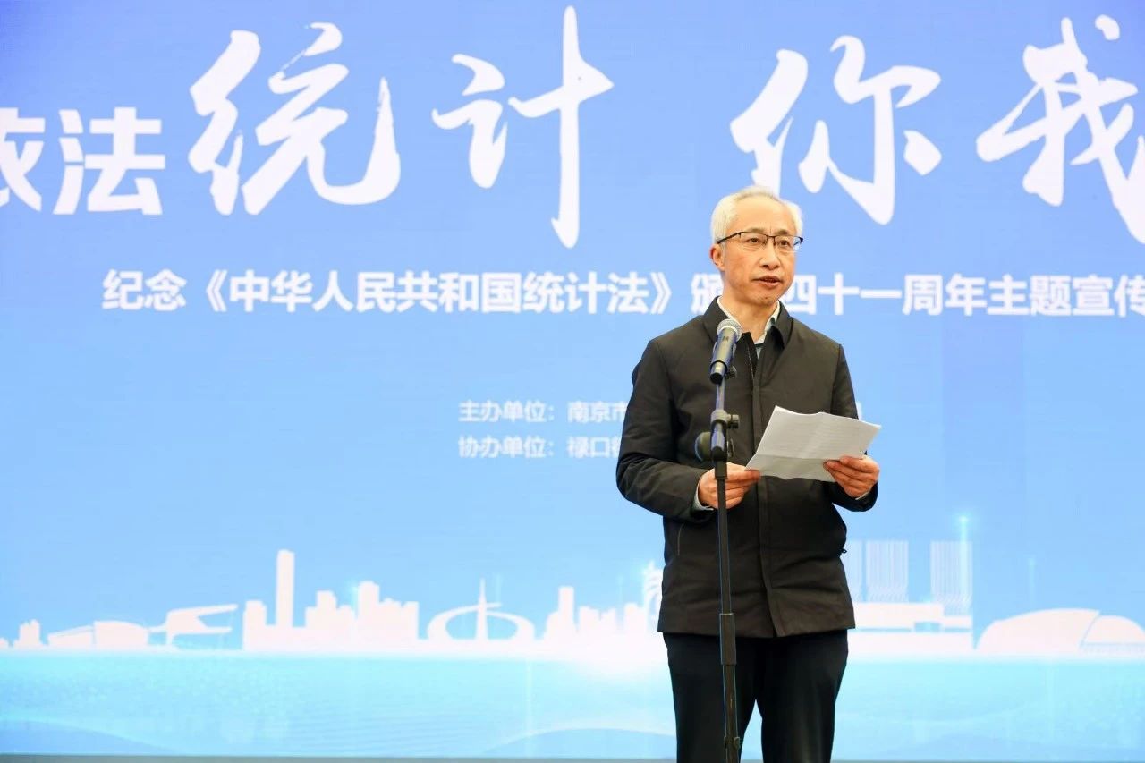 南京市统计局二级巡视员陈锡文在讲话中,对长期支持全市统计事业的各界人士表示了感谢。他表示,《中华人民共和国统计法》自1983年颁布、1996年和2009年两次修改以来,有力促进了统计事业发展。2024年新修改的《统计法》是贯彻落实党中央对统计工作重大决策部署的重要举措,是笃信笃行习近平法治思想的生动实践,是适应以统计现代化更好服务中国式现代化的迫切需要。他希望全市统计部门和各级统计人员带头学习好、运用好、遵循好新修改《统计法》,不断提高统计工作的科学性;也希望广大社会公众能够熟悉《统计法》,做普法宣法的践行者,让统计法治意识更加深入人心,让统计法治精神在全市落地生根。