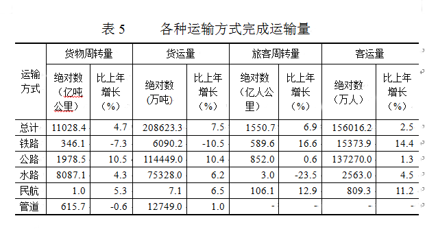 交通运输业基本平稳。全年旅客运输量、货物运输量分别比上年增长2.5%和7.5%,旅客周转量、货物周转量分别增长6.9%和4.7%。完成港口货物吞吐量22.6亿吨,比上年增长5.7%,其中外贸货物吞吐量3.8亿吨,增长8.1%;集装箱吞吐量1500.5万标准集装箱,下降9.7%。年末全省公路里程15.8万公里,比上年新增1427.3公里。其中,高速公路里程4488.3公里,新增45.3公里。铁路营业里程2632.4公里,铁路正线延展长度4200.3公里。年末民用汽车保有量1104.0万辆,净增149.6万辆,分别比上年末增长15.7%和5.9%。年末个人汽车保有量935.7万辆,净增145.6万辆,分别比上年末增长18.4%和9.6%。其中,个人轿车保有量665.6万辆,净增111.0万辆,分别增长20.0%和12.5%。