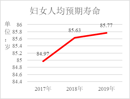 近年来,全市不断加强基本医疗服务供给,各项保健措施进一步完善,妇女的健康水平不断提升,妇女人均预期寿命已达85.77岁,较上年提高0.14岁。