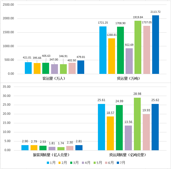 7月份,随着疫情防控成果的持续巩固,全市公路、水路运输、港口生产、民航客货运、城市公共交通、邮政行业均在不断恢复,7月当月运营规模均有不同程度的提升。但国内多地疫情散发,使整个交通运输邮政行业的平稳运行存在诸多不确定因素,值得关注。
