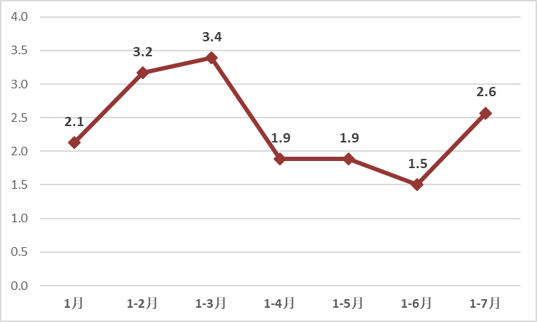 快递业务量降幅不断收窄。受全国疫情多点散发影响,全市快递业务规模下滑明显,但随着疫情防控成果的逐步巩固,再叠加电商平台促销活动影响,快递业务量降幅在不断收窄。1-7月,全市快递服务企业业务量累计完成5.05亿件,同比下降5.9%,降幅比上月收窄3.3个百分点;业务收入累计完成51.00亿元,同比下降9.5%,降幅比上月收窄2.7个百分点。
